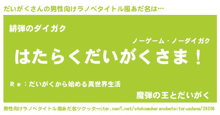 | 意味不明あだ名 | 『住所不定無職だいがく(1歳)』 |