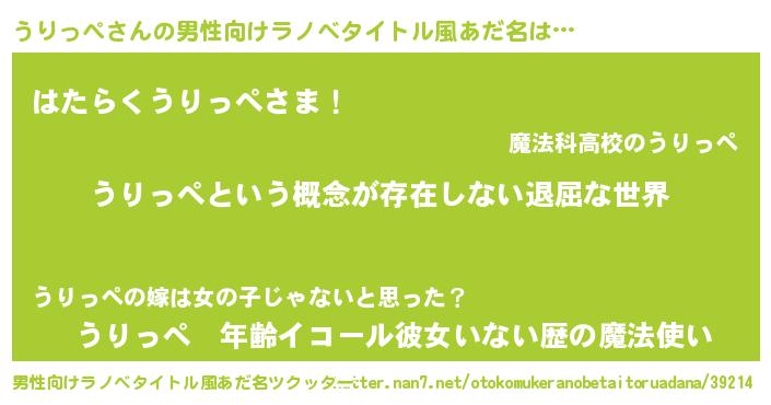 | 胡散臭い通販商品みたいなあだ名 | 『来世でも幸せになれる水素水…その名も「うりっぺ」』 |