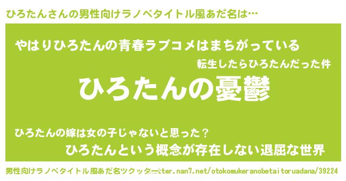 | 女子向けラノベタイトル風あだ名 | 『(仮)ひろたんのやんごとなき事情』 |