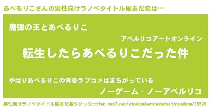 | ヒーロー風カッコイイあだ名 | 『仮面アベダー』『正義の使者あべるりこ』 |