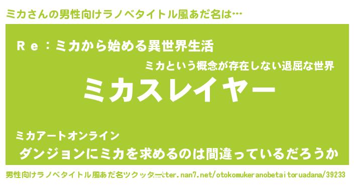 | ヘコむあだ名 | 『ミカを』『ミカ(遠い目)』 |
