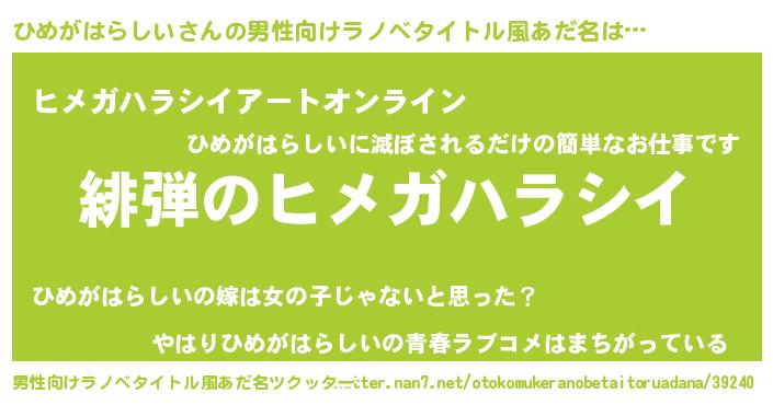 ひめがはらしいさんの男性向けラノベタイトル風あだ名をツクッター!