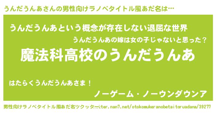 | 女子向けラノベタイトル風あだ名 | 『うんだうんあなんてお断りですっ。』 |