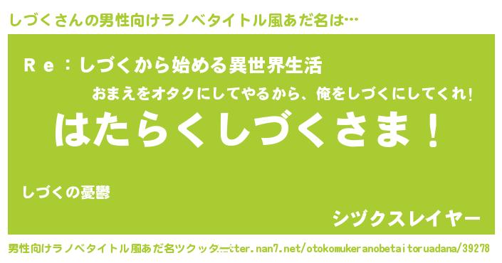 | 意味不明あだ名 | 『自称しづく』『もやし科しづく属』 |