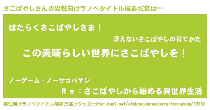 | 意味不明あだ名 | 『住所不定無職さこばやし(41歳)』 |