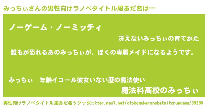 | 意味不明あだ名 | 『永久保存みっちぃ』『自称みっちぃ』 |