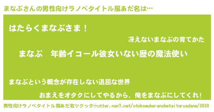 | 女子向けラノベタイトル風あだ名 | 『まなぶの玉の輿計画!』 |