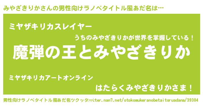 | ヒーロー風カッコイイあだ名 | 『仮面ミヤダー』『スーパーミヤザキリカ』 |