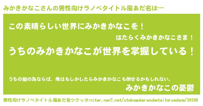 | 意味不明あだ名 | 『住所不定無職みかきかなこ(7歳)』 |