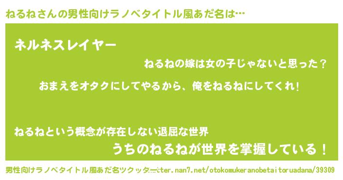 | ヒーロー風カッコイイあだ名 | 『正義の使者ねるね』『炎刃騎士ネル』 |