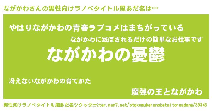 | 女子向けラノベタイトル風あだ名 | 『(仮)ながかわのやんごとなき事情』 |