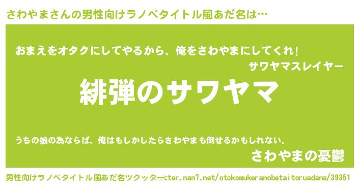 | 女子向けラノベタイトル風あだ名 | 『シンデレラさわやま家の靴箱館』 |