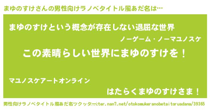 | 女子向けラノベタイトル風あだ名 | 『乙女ゲームの破滅フラグしかない悪役まゆのすけに転生してしまった…』 |