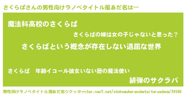 | 意味不明あだ名 | 『永久保存さくらば』『自称さくらば』 |