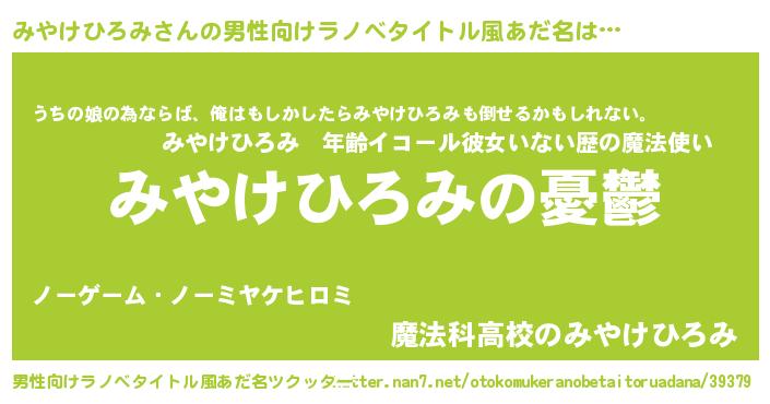| 女子向けラノベタイトル風あだ名 | 『(仮)みやけひろみのやんごとなき事情』 |
