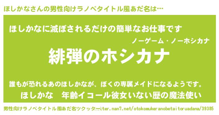 | ヘコむあだ名 | 『ほしかな(笑)』『ほしにゅー』 |
