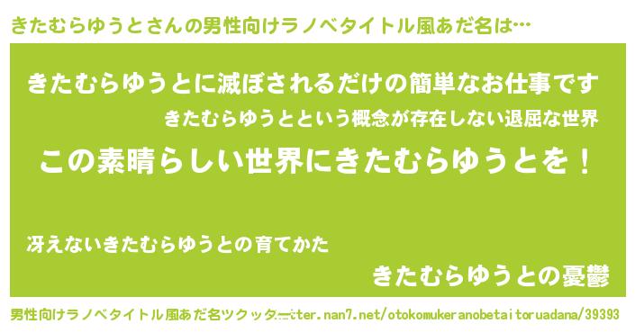 | 女子向けラノベタイトル風あだ名 | 『乙女ゲームの破滅フラグしかない悪役きたむらゆうとに転生してしまった…』 |