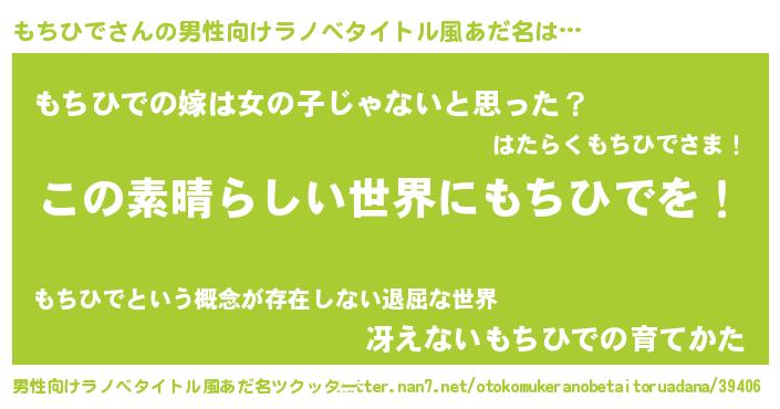 | 意味不明あだ名 | 『住所不定無職もちひで(6歳)』 |