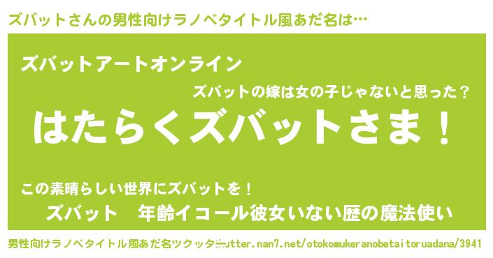 | ヒーロー風カッコイイあだ名 | 『スーパーズバット』『天弓騎士ズバ』 |
