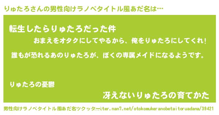 | ヘコむあだ名 | 『りゅたろ(笑)』『りゅにゅー』 |