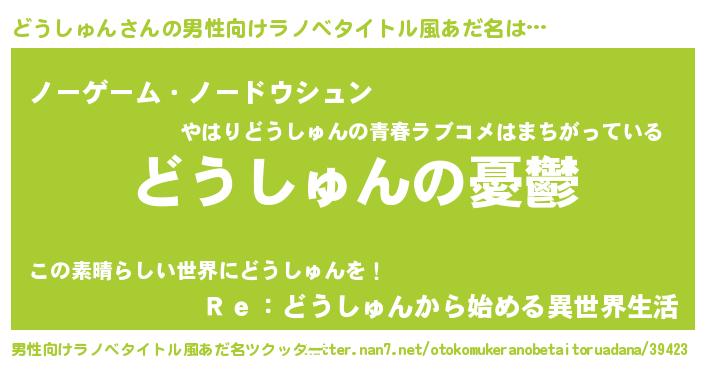| 胡散臭い通販商品みたいなあだ名 | 『モテモテ間違いなしブレスレット…その名も「どうしゅん」』 |