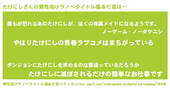 | 女子向けラノベタイトル風あだ名 | 『たけにしの雑貨屋さん』 |