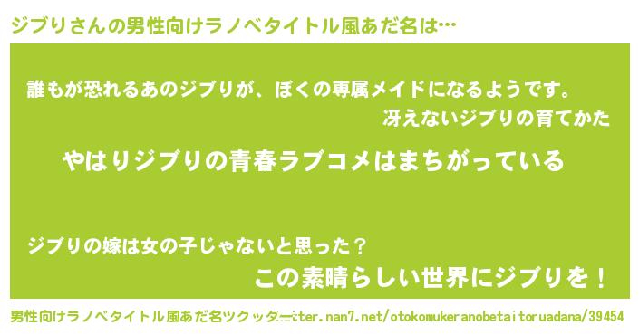 | 女子向けラノベタイトル風あだ名 | 『ジブり伯爵の花嫁』『ジブり様がみてる』 |