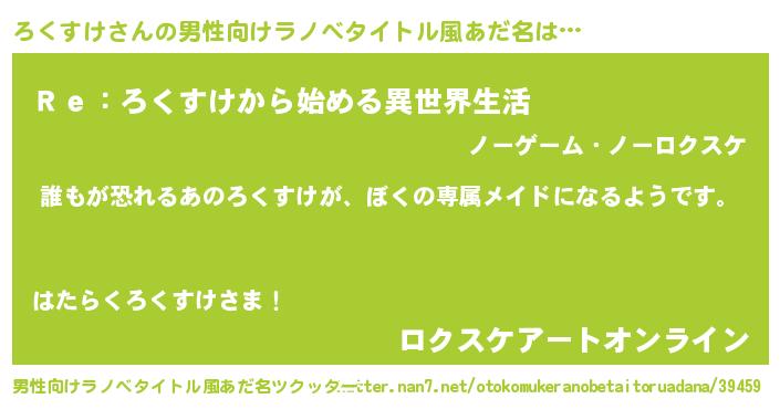 | ヘコむあだ名 | 『ろくすけ(爆)』『ろくにー』 |