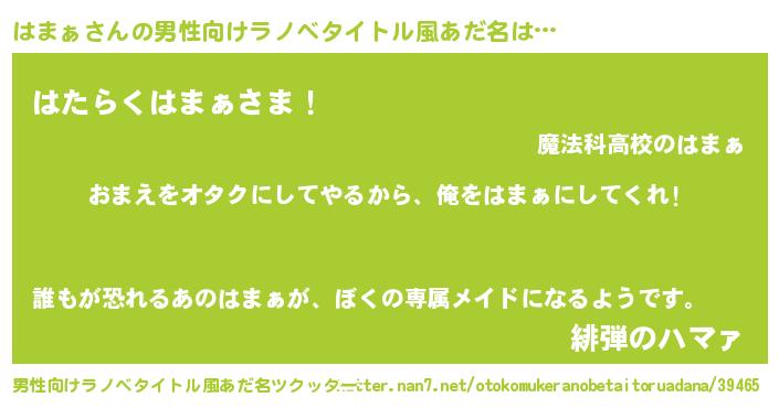 | ヒーロー風カッコイイあだ名 | 『愛の使者はまぁ』『サイバー戦士ハマァ』 |