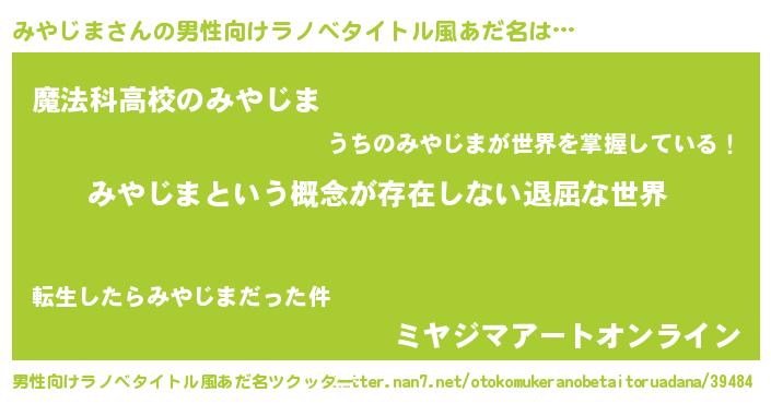 | 意味不明あだ名 | 『永久保存みやじま』『自称みやじま』 |