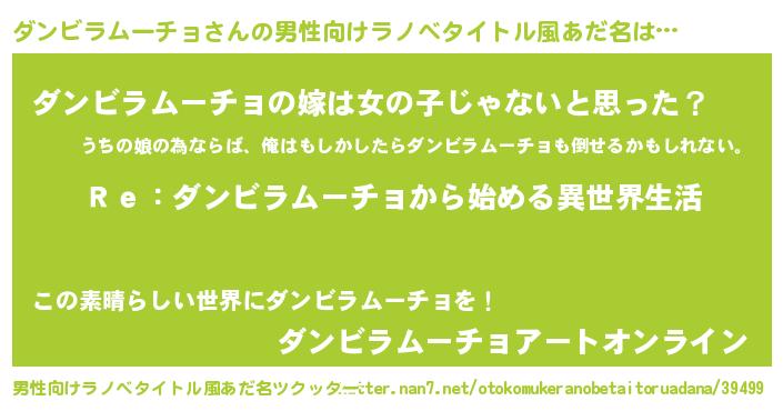 | 女子向けラノベタイトル風あだ名 | 『闇のダンビラムーチョ』 |