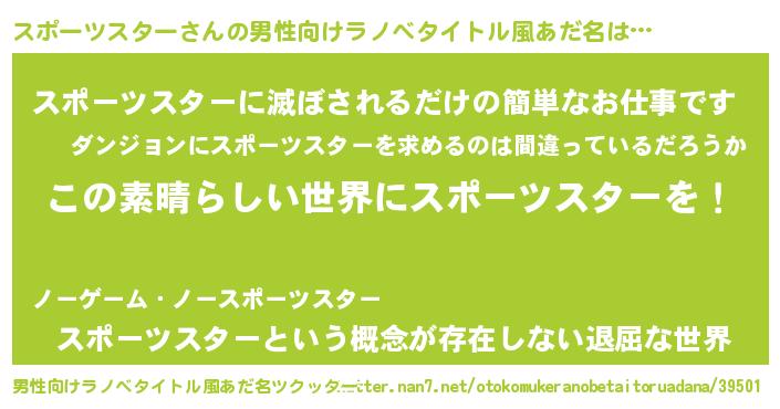 | 意味不明あだ名 | 『住所不定無職スポーツスター(39歳)』 |