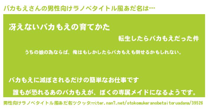 | 女子向けラノベタイトル風あだ名 | 『バカもえの婚約者』 |