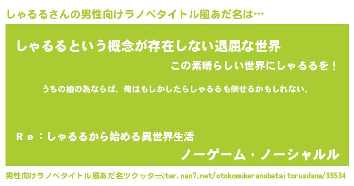 | 女子向けラノベタイトル風あだ名 | 『しゃるる伯爵の花嫁』『闇のしゃるる』 |