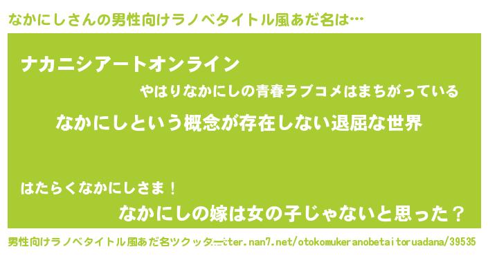 | 女子向けラノベタイトル風あだ名 | 『異世界で失敗しない100のなかにし』 |
