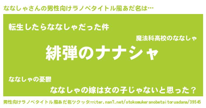 | 胡散臭い通販商品みたいなあだ名 | 『信頼と実績のネックレス…その名も「ななしゃ」』 |