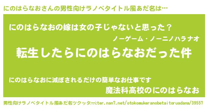 | ポケモン風あだ名 | 『ニノキング』『ヒニノハラナオ』 |