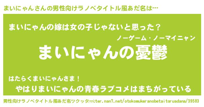 | 女子向けラノベタイトル風あだ名 | 『(仮)まいにゃんのやんごとなき事情』 |