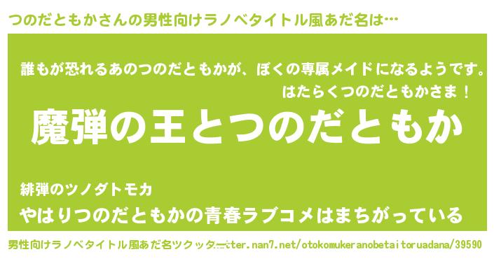 | 意味不明あだ名 | 『住所不定無職つのだともか(68歳)』 |