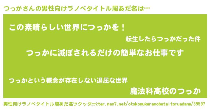| 胡散臭い通販商品みたいなあだ名 | 『あなたにだけ特別に提供する限定10本のレアな日本酒…その名も「つっか」』 |