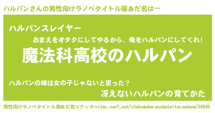 | 意味不明あだ名 | 『自称ハルパン』『エリンギ科ハルパン属』 |