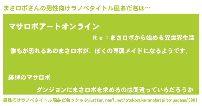 | 伝説のあだ名 | 『古より伝わる吟遊詩人まさロボ』 |