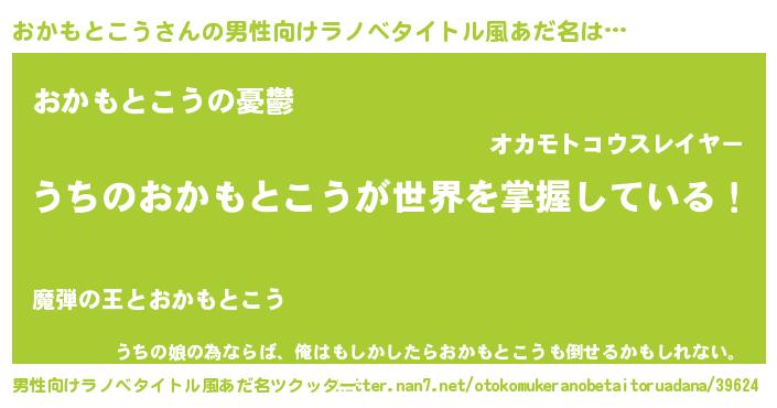 | 胡散臭い通販商品みたいなあだ名 | 『億万長者になれるブレスレット…その名も「おかもとこう」』 |