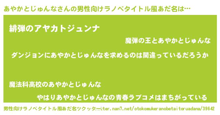 | 女子向けラノベタイトル風あだ名 | 『あやかとじゅんなの卵を拾いまして』 |