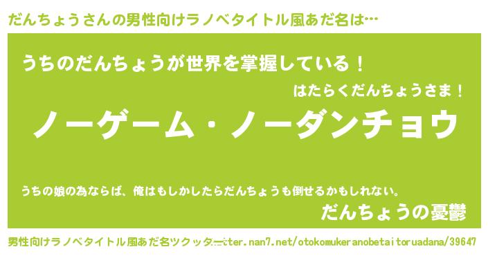 | ヒーロー風カッコイイあだ名 | 『慈愛の使者だんちょう』『幻影騎士ダン』 |