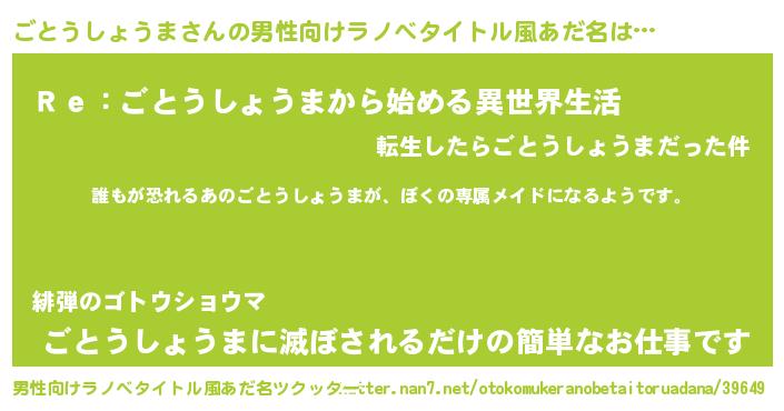 | 意味不明あだ名 | 『永久保存ごとうしょうま』 |