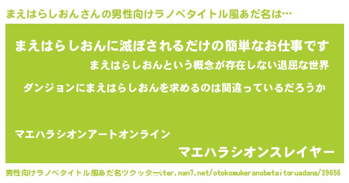 | ヘコむあだ名 | 『まえ太郎』『まえはらしおん(笑)』 |