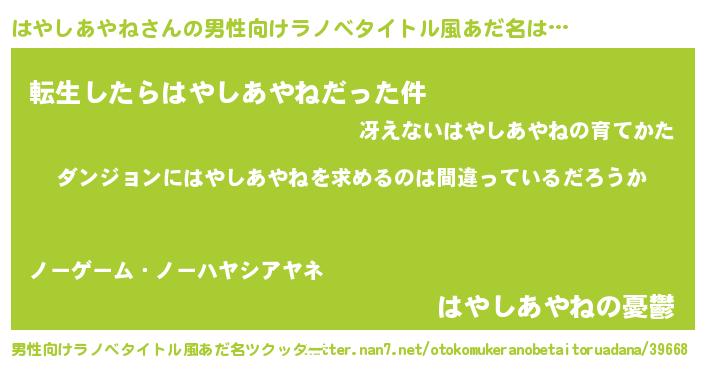 | 女子向けラノベタイトル風あだ名 | 『はやしあやねは平凡を望む』 |