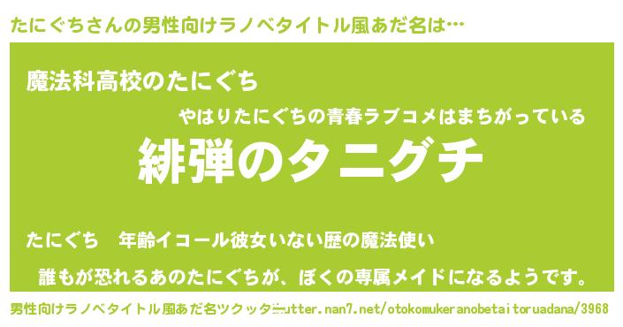 | 胡散臭い通販商品みたいなあだ名 | 『ガンによく効く高麗人参…その名も「たにぐち」』 |