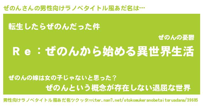 | 女子向けラノベタイトル風あだ名 | 『ぜのんストレイドッグス』 |